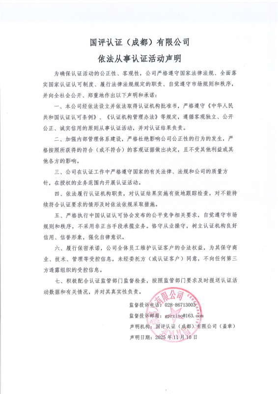 依法从事认证活动声明